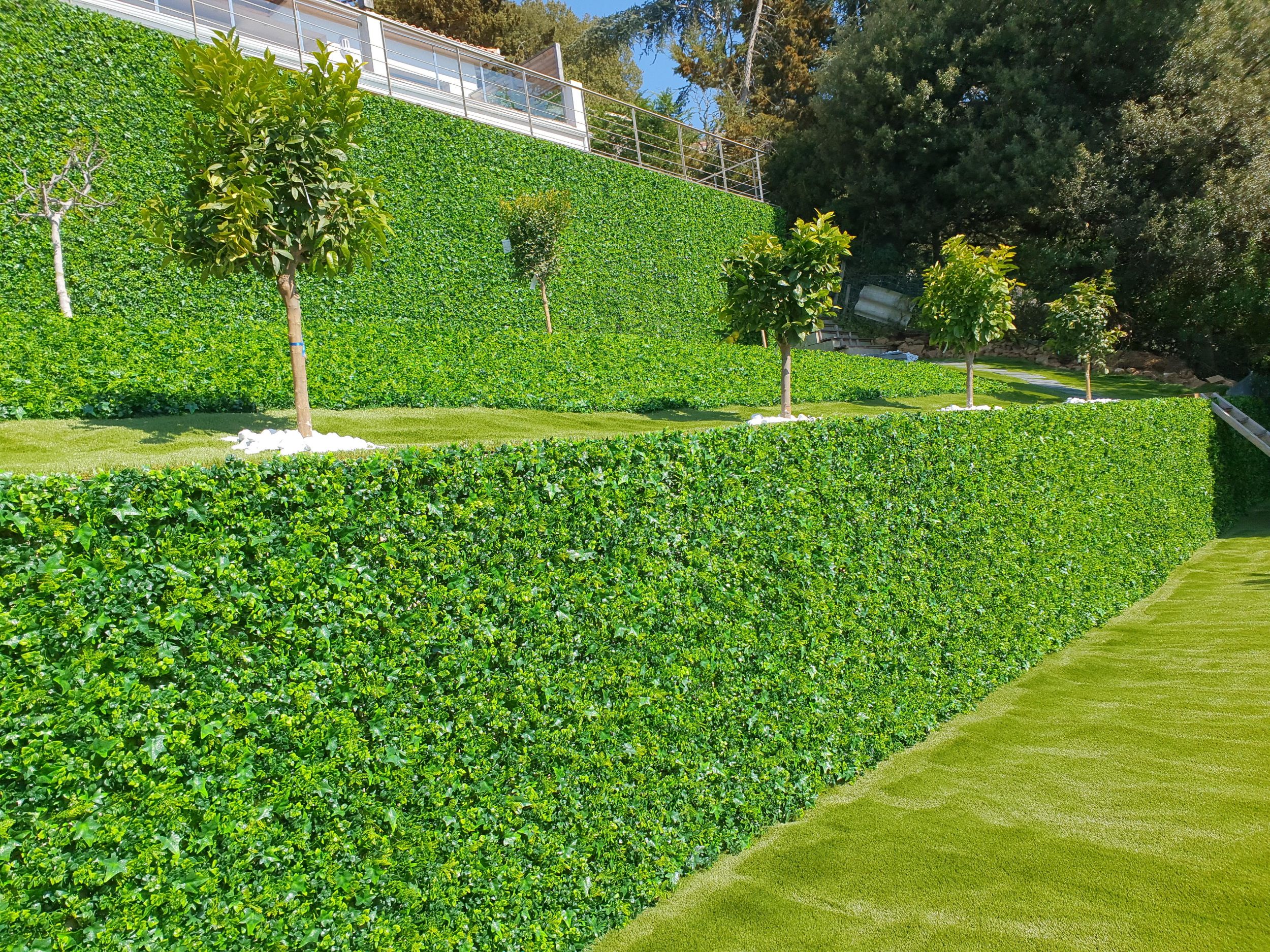 Découvrez nos réalisations de balcons/terrasses : Un gazon artificiel pour balcons et terrasses peut être utile car il apporte une touche de verdure et de confort. De plus, il reste beau toute l'année et est facile à nettoyer et résistant aux intempéries.